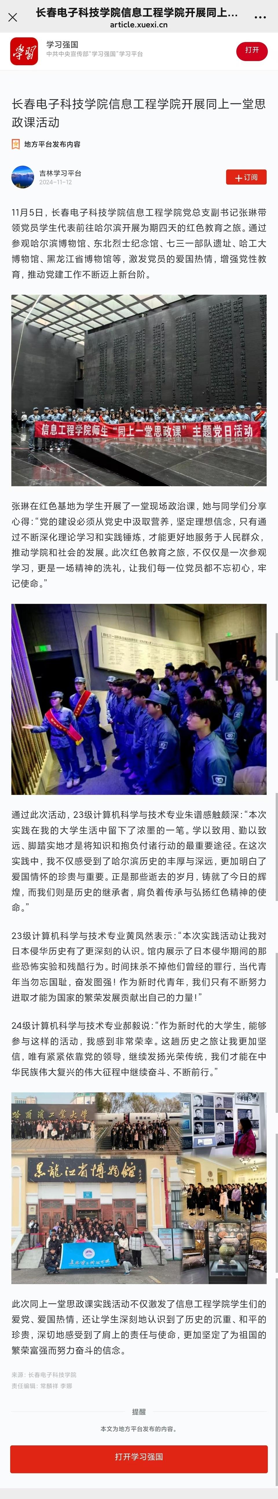为全面贯彻党的教育方针,落实新时代立德树人工程,加快构建和完善思想政治工作体系。长春电子科技学院积极筹备思政教育实践活动,以红色研学赋能大思政课建设,让学生了解国...