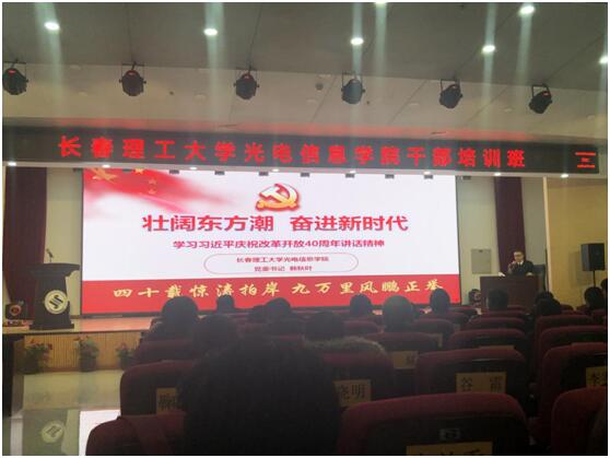 2019年1月8日上午,在长春理工大学光电信息学院图书馆报告厅,党委书记韩秋叶同志做了关于“学习习近平庆祝改革开放四十周年讲话精神”的专题报告。马社学院教职员工全体出席。